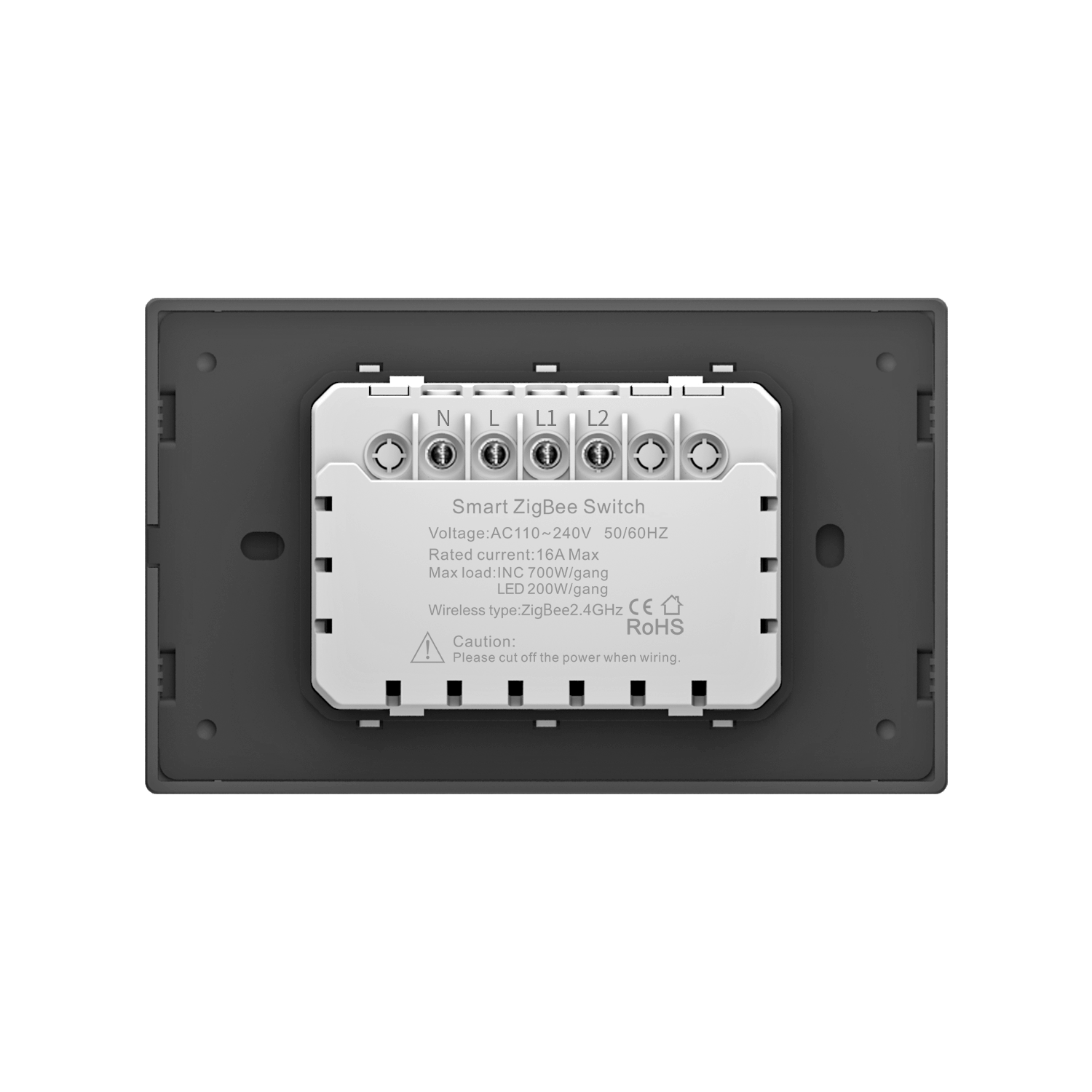 akubela zigbee smart light switch 2 gang Glass surface Black