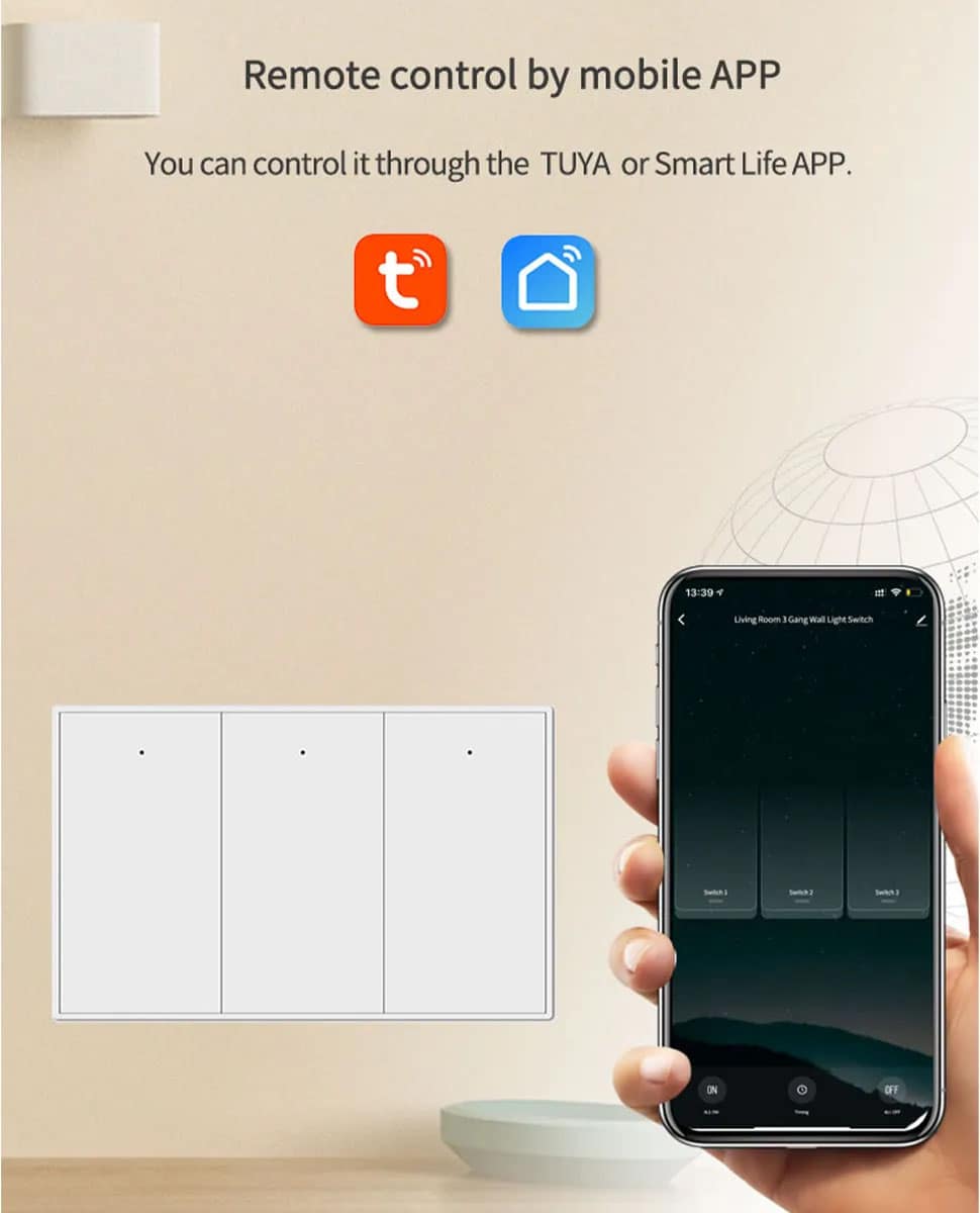 – Remote Control: Smart Home Light Switches can be controlled remotely using your phone, and devices connected with switches can work independently. Even if you are not at home, you can use the mobile app to remotely control the device from anywhere and control the lights on/off at any time.