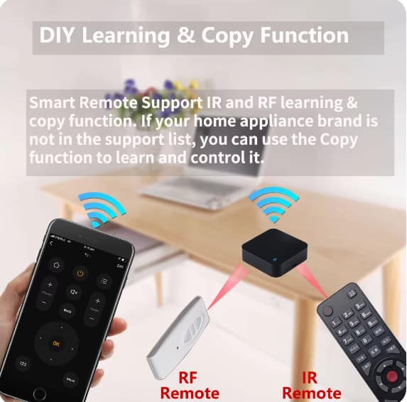 The Smart IR&RF Remote supports all infrared remotes.